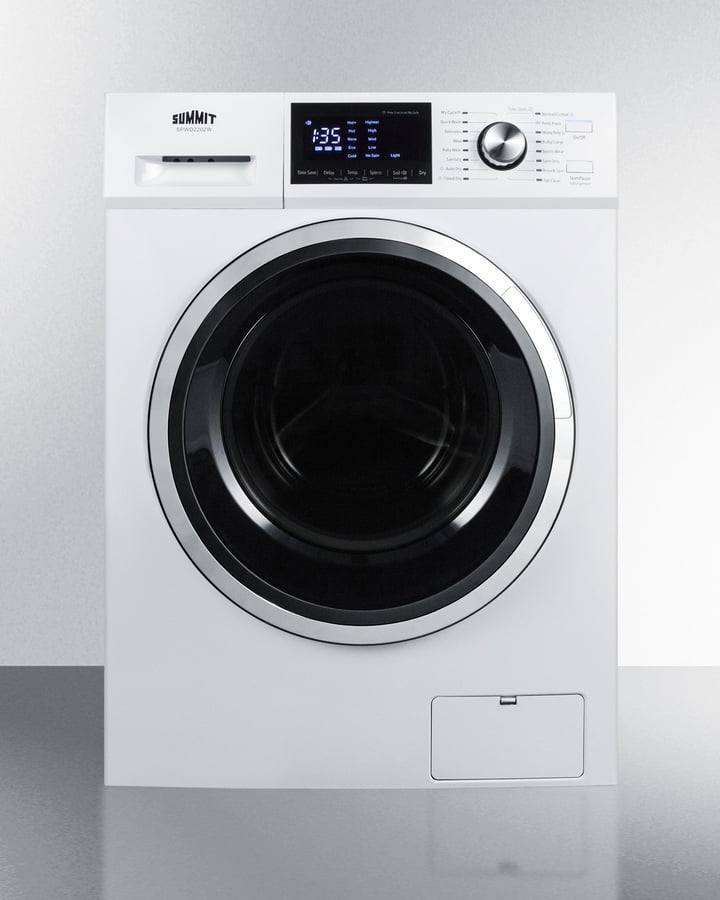 5 Temperature Settings To Accommodate A Variety Of Washes 16 Wash Cycles To Ensure Each Fabric Gets The Proper Laundry Conditions Designed For 115V Non-Vented Use Combo Washer/Dryer Brings A Full Laundry Station To A Compact 24" Footprint Summit Spwd2202W Is A 24" Wide Washer/Dryer Combo Designed To Maximize Laundry Capacity In An Easy Fit. This Non-Vented Condensing (Ductless) 115V Washer/Dryer Comes In A Classic White Finish. The Stainless Steel Drum Offers A Generous 2.7 Cu.Ft. Capacity To Accommodate Larger Laundry Loads Than Previous Versions Of This Unit. The Front-Loading Design Features A Large, Easy-To-Open Glass Door And Pull-Out Dispenser For Detergent, Pre-Wash, And Fabric Softener. A Combination Digital And Dial Control Panel With A Large Lcd Readout Makes It Easy And Intuitive To Operate This Unit. The Spwd2202W Includes 16 Wash Programs To Ensure All Fabrics Receive The Proper Treatment. Settings Include Specialized Programs For Cotton, Permanent Press With De-Wrinkling, Heavy Duty, Bulky/Large Loads, Sportswear, Babywear, Wool, Delicates, And More.A "Sanitize" Cycle Allows The Washer To Use Higher Temperatures For Smaller Loads, While A "Quick" Setting Is Ideal For Washing Small Loads In Less Time. For Improved Maintenance, This Combo Includes A "Tub Clean" Cycle. Five Spin Speeds Up To 1300 Rpm Help To Provide The Right Level Of Spin For Each Dry Cycle. This Unit Offers The Choice Of Four Temperature Settings And Three Soil Levels, As Well As A Memory Function ("My Cycle") For Added Convenience. With Its Quality Performance, Large Capacity, And Attractive Design, The Spwd2202W Brings True Value And Efficiency To Laundry In Space-Challenged Settings. Note: This Unit Replaces Previous Model Spwd2200W, And Features An Upgraded Interior With A Larger Wash And Dry Capacity.