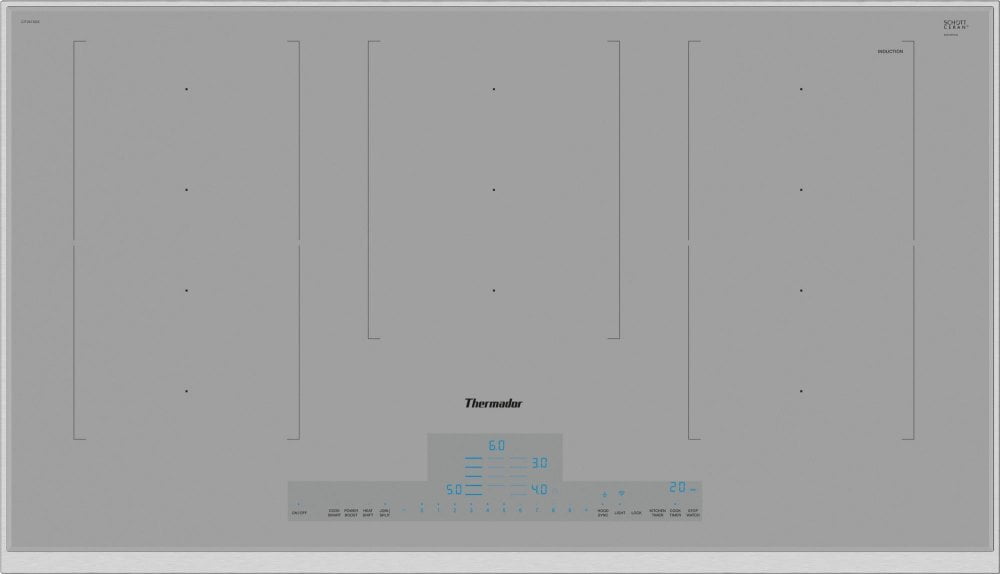 Thermador Frameless Liberty™ Induction Cooktop gives users more space and flexibility with its state of the art features. Built with 11 oval indicators that are divided into 3 cooking zones, the cooktop can accomodate 4" to 10" pots and pans, and teppanyaki grills that are up to 16" long. Efficiently turn the heat down from a saute to a slow simmer with Liberty™ HeatShift™, which allows you to conveniently change the power level just by moving the pot across the cooktop. The Liberty™ PanBoost® technology makes frying even easier by automatically lowering heat after 30 seconds of maximum power, giving out consistent results each time.