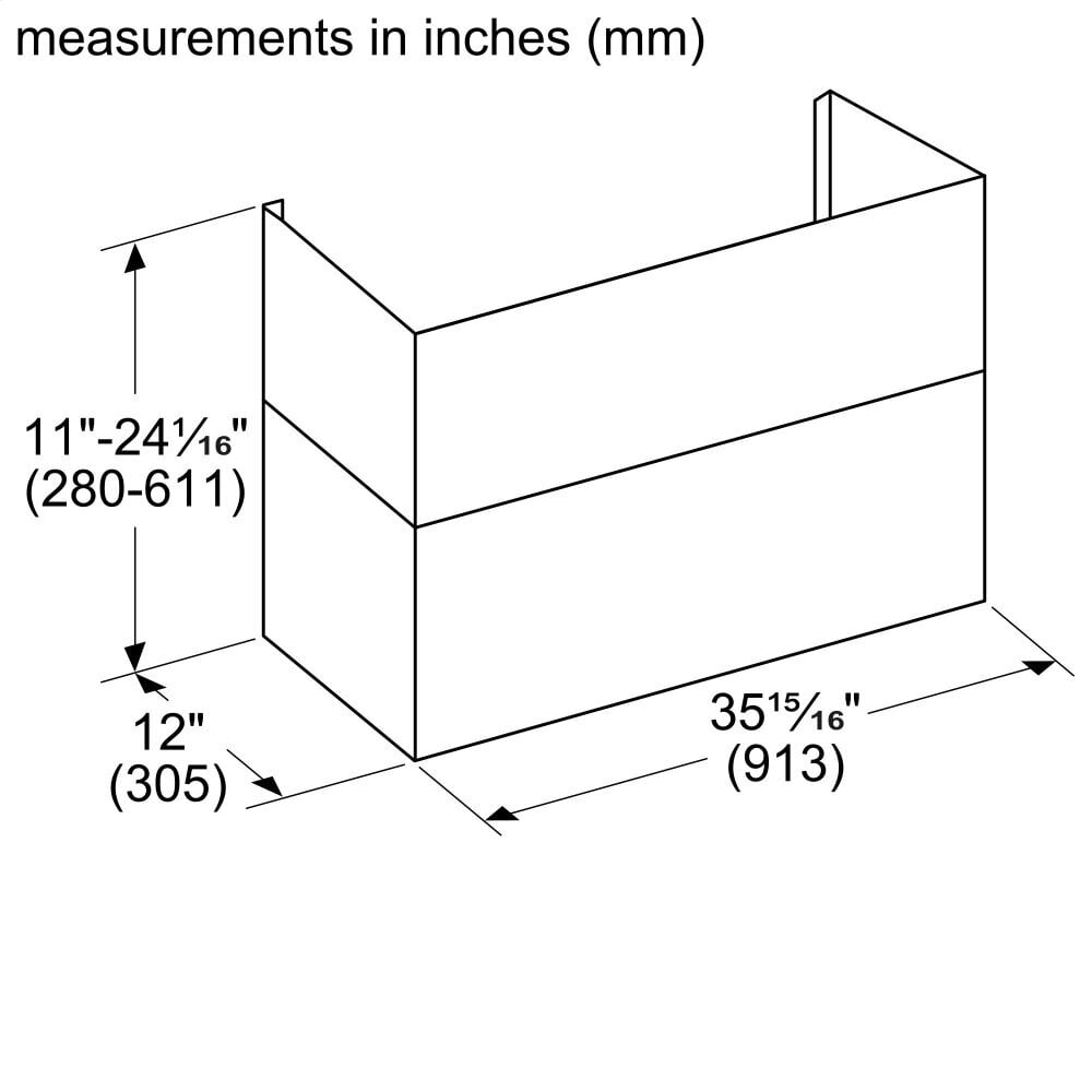 - Lower duct cover piece is 11" Tall; Upper duct cover piece is 14-1/16" tall