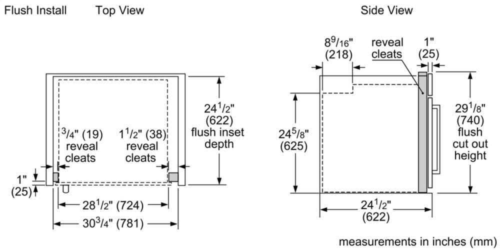 | Required cutout size (HxWxD) (in) | 27'' x 28 1/2'' x 23 1/2'' |