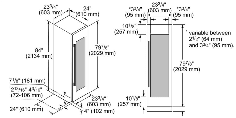 | Required cutout size (HxWxD) (in) | 84' x 24' x 24 3/4' |