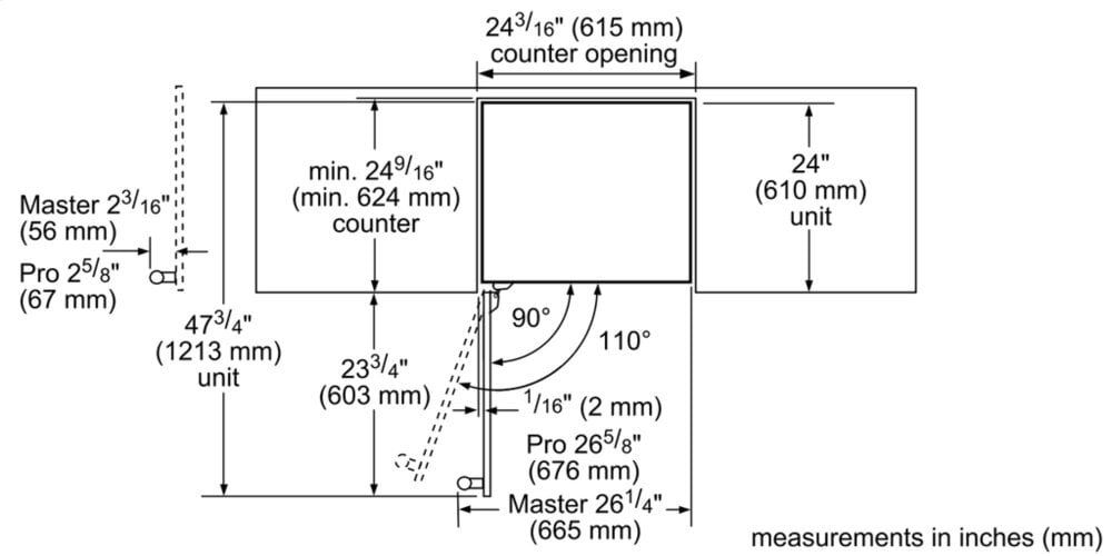 | Required cutout size (HxWxD) (mm) | 889.0 x 614.40 x 623.90 |