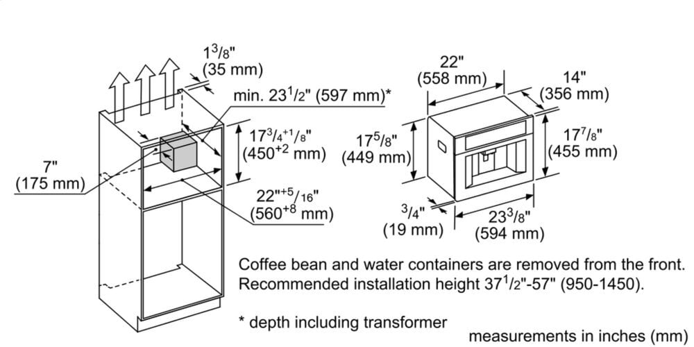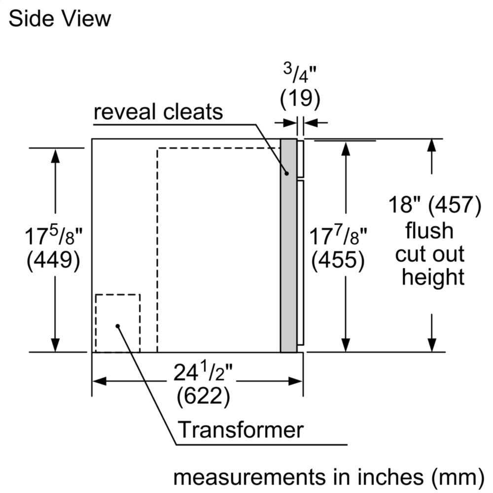 | Required cutout size (HxWxD) (in) | 17 11/16' x 21 31/32' x 23 33/64' |