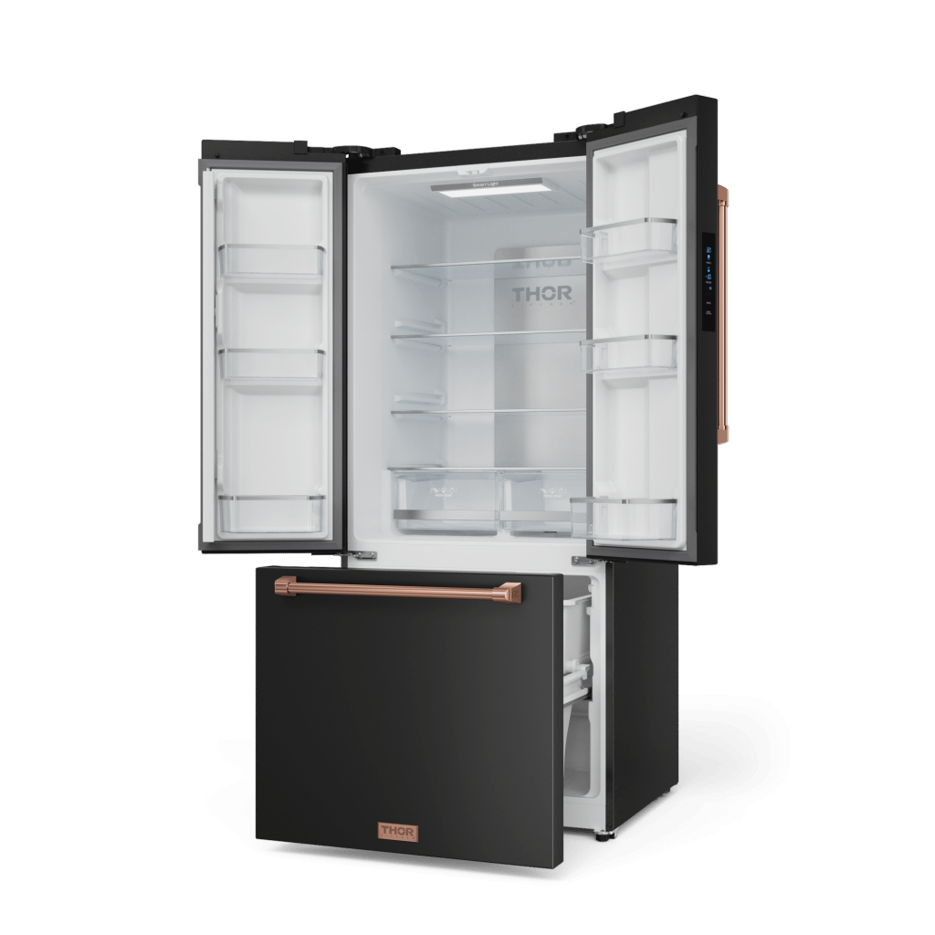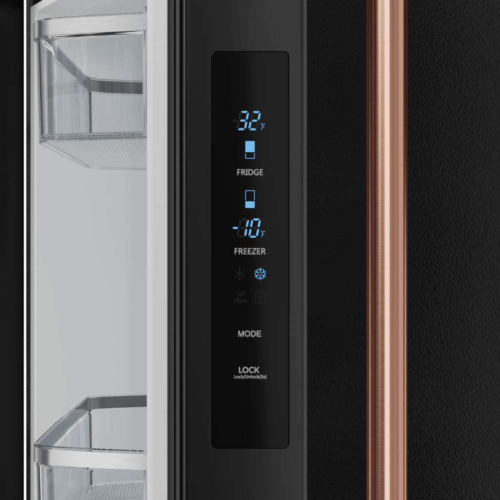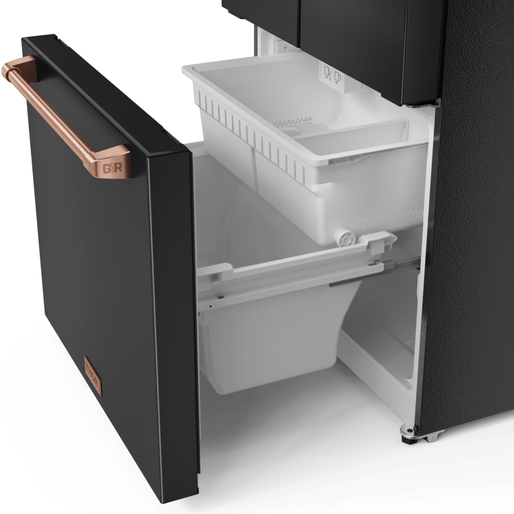 [Pre-Order] 30 Inch 17.7 Cu Ft French Door Counter Depth Refrigerator With Ice Maker In Black/Rose Gold Gordon Ramsay Series - Rf3017Ffd00-Rsg Experience Superior Freshness With The 30 Inch 17.7 Cu Ft French Door Counter Depth Refrigerator In Black/Rose Gold. With Advanced Cooling Technology, Spacious Interiors, And Customizable Features, This Refrigerator Ensures Your Ingredients Stay At Peak Freshness. Designed For Durability And Efficiency, It Brings Top-Tier Performance And Style To Your Kitchen.