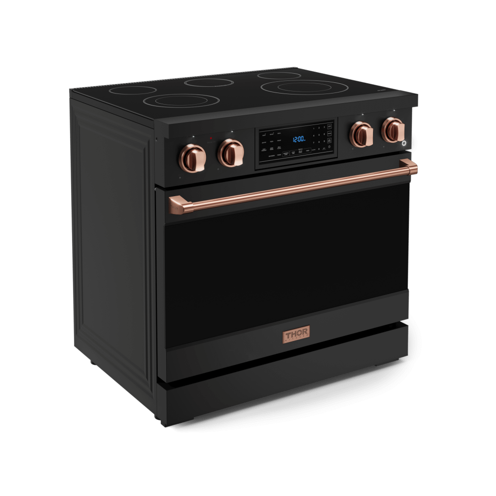 Thor Kitchen RSE36BRSG 36 Inch Professional Electric Range With Tilt Panel Touch Control In Black/Rose Gold Gordon Ramsay Series - Rse36B-Rsg