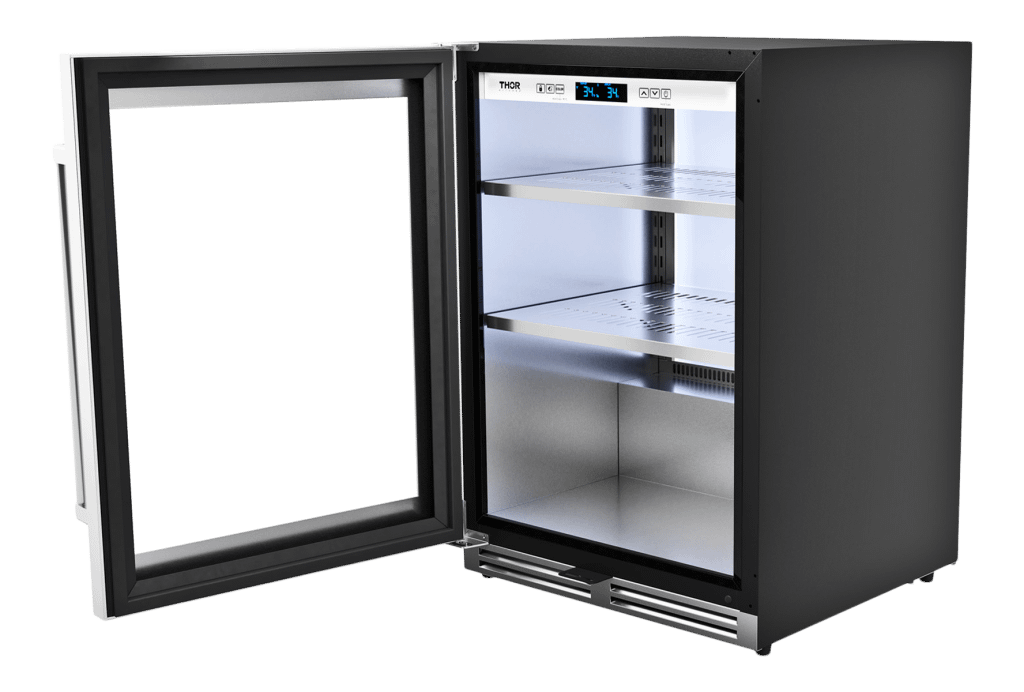 Thor Kitchen 24-Inch Professional Undercounter Beverage Cooler - Model Tbr24U-Lh Thor Kitchen Offers The Power And Performance Of A Premium Professional Appliance At A Practical Price. Thor Kitchen'S 24-Inch Left Door Swing Undercounter Beverage Cooler Is The Perfect Addition To Any Man Cave. The Sleek Stainless-Steel Design And Illuminating Amber Led Glow Panel Will Create The Ultimate Chill Experience As You Unwind With Your Favorite Beverage. The Double-Glazed Triple Pane Glass Panel Even Reduces Transmission, So Your Drinks Are Perfectly Chilled Every Time. The Zero Clearance Hinges Ensure That The Cooler Seamlessly Integrates Into Your Chosen Location Without Any Clearance Concerns, Maximizing Your Space Utilization. #Cooklikeagod