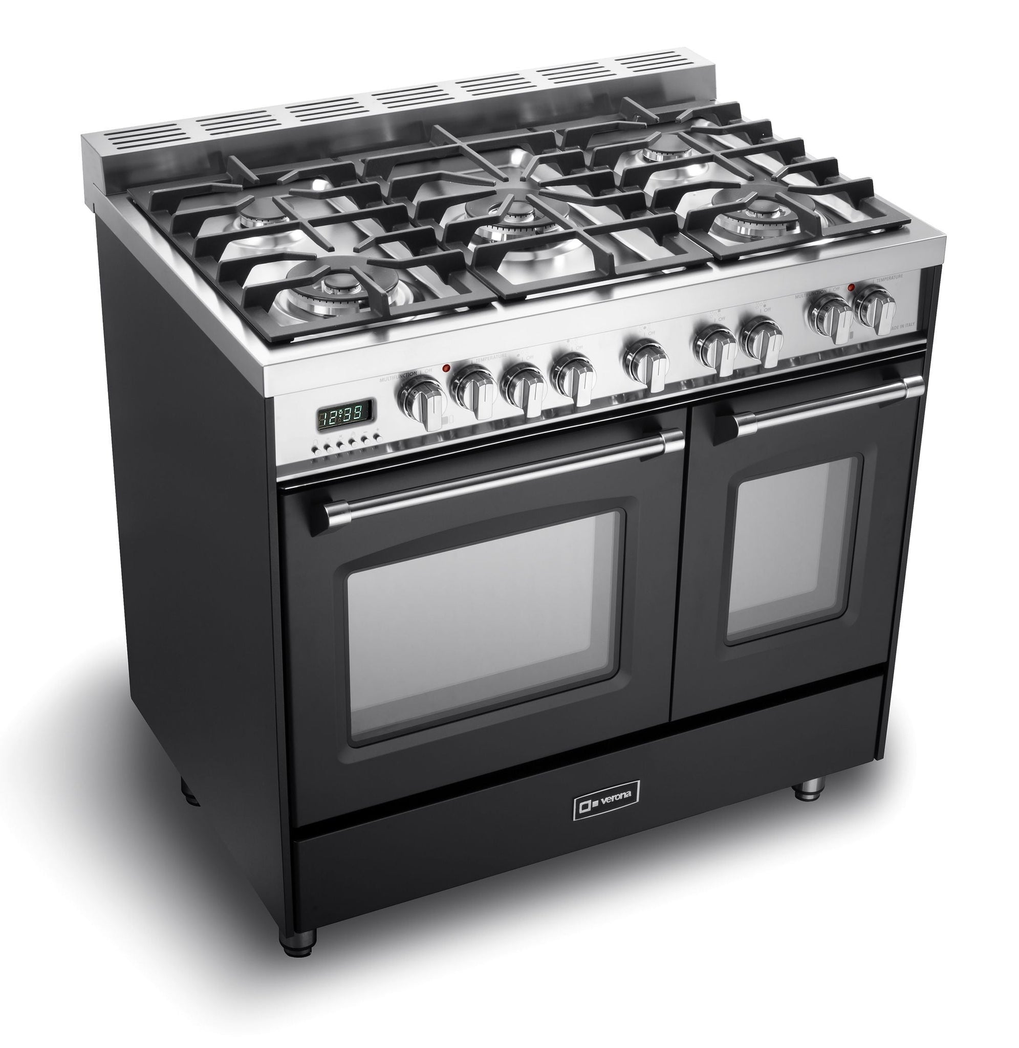Verona VPFSGE365DE Matte Black 36" Prestige Dual Fuel Double Oven Range