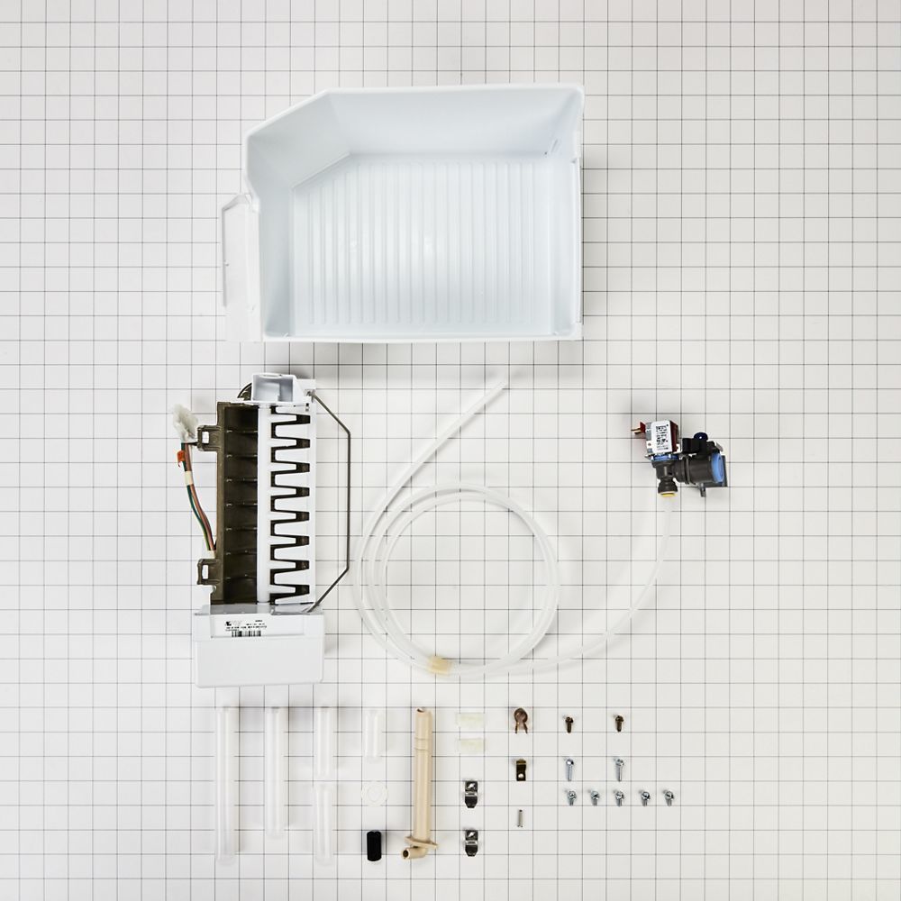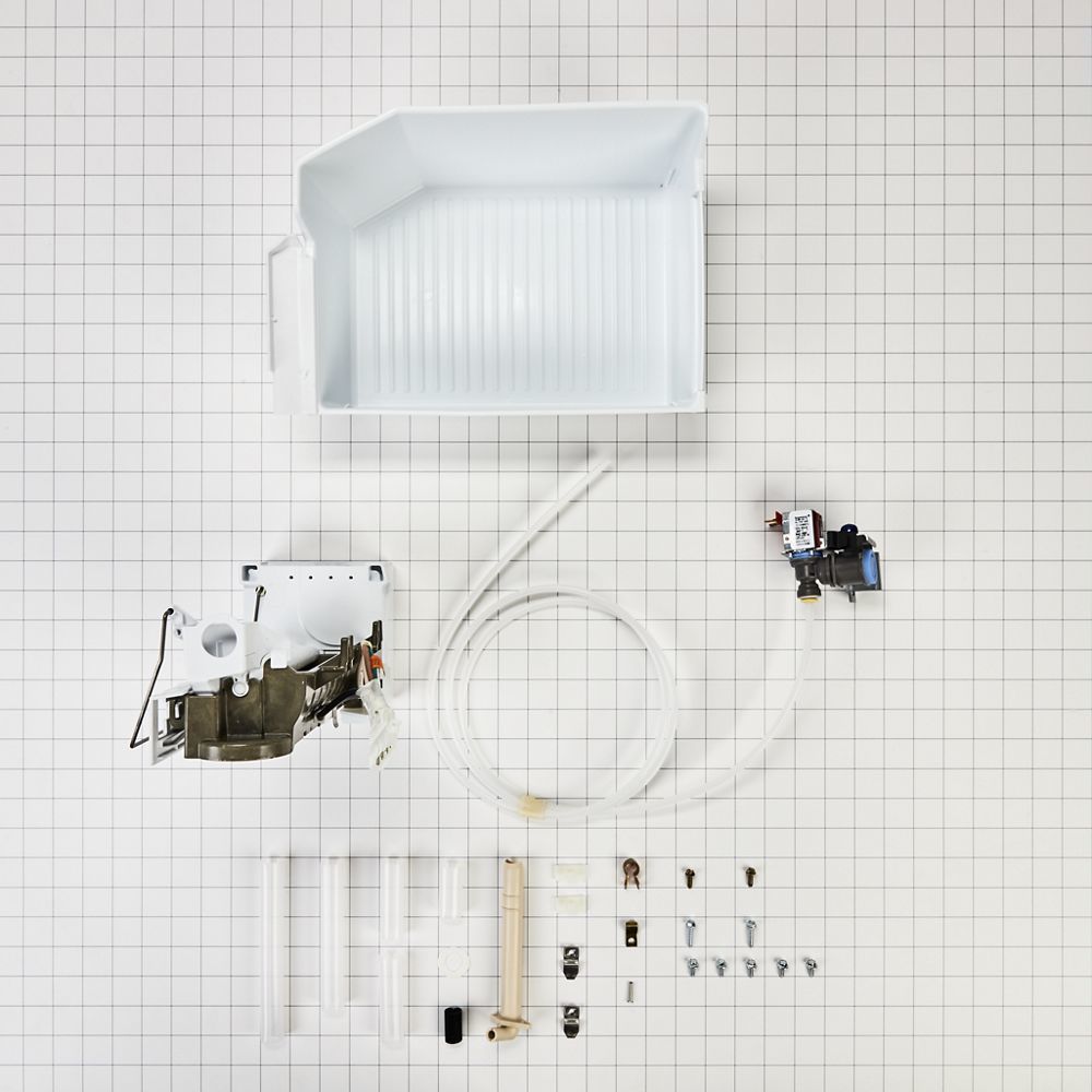 This Top Freezer Refrigerator Ice Maker Assembly Includes The Items Required To Add An Ice-Making Feature To Your Current Refrigerator. This Complete Kit Includes (1) Ice Maker Assembly, (1) Ice Bin, (1) Water Valve With Tubing, All Mounting Hardware And Installation Instructions. This Is An Accessory That Can Be Used Across Most Major Brands; Check To See If Your Model Number Is Compatible. Installing This Accessory Will Require Basic Hand Tools, Minor Disassembly Of The Refrigerator And Novice Repair Experience. Be Sure To Unplug The Refrigerator Or Shut Off The House Circuit Breaker For The Appliance Before Installing This Kit. You Must Also Turn Off The Water Supply To The Refrigerator Before Installation. Recommended Item: You May Also Need A In-Line Water Filter Installation Kit (Item 4378411Rb ) To Complete This Installation.
