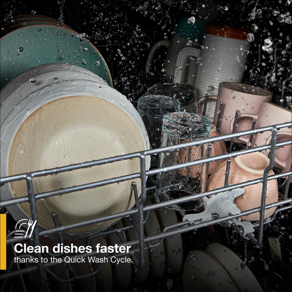 Clean dishes fast with a cycle that thoroughly takes care of plates, pans and glasses when you need them done in a hurry.