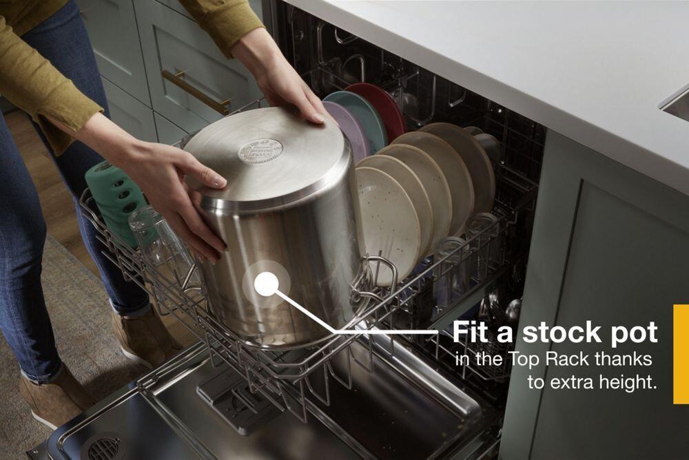 Load More, Run Less In This Large Capacity Dishwasher. With A Top Rack Tall Enough To Fit A Stock Pot, You Can Fit All The Dishes Your Family Piles Up. Plus, You Can Move Or Separate The Flexible 3-Piece Silverware Basket To Make Extra Space For Large Pans And Casserole Dishes.
