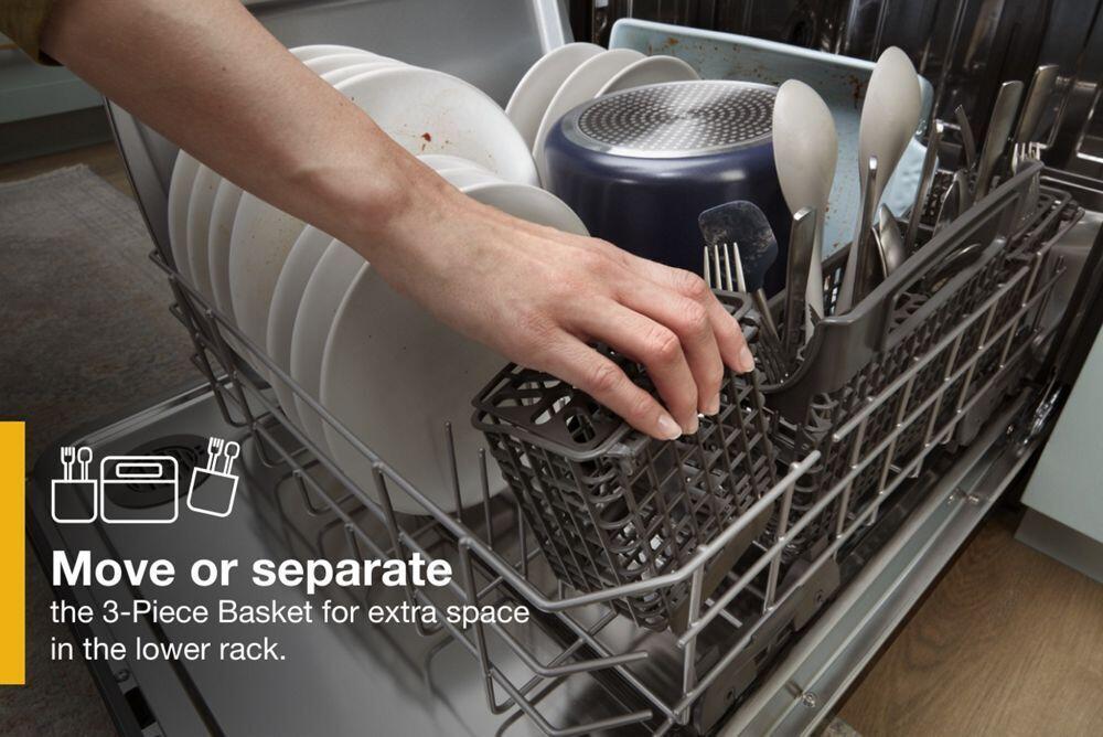 Load More, Run Less In This Fingerprint Resistant Dishwasher With 3Rd Rack. Load Bowls And Mugs In The 3Rd Rack To Free Up Space Below, And Fit Tall Items Where You Want In This Dishwasher With Adjustable Rack. Plus, You Can Move Or Separate The Flexible 3-Piece Silverware Basket To Make Extra Space.