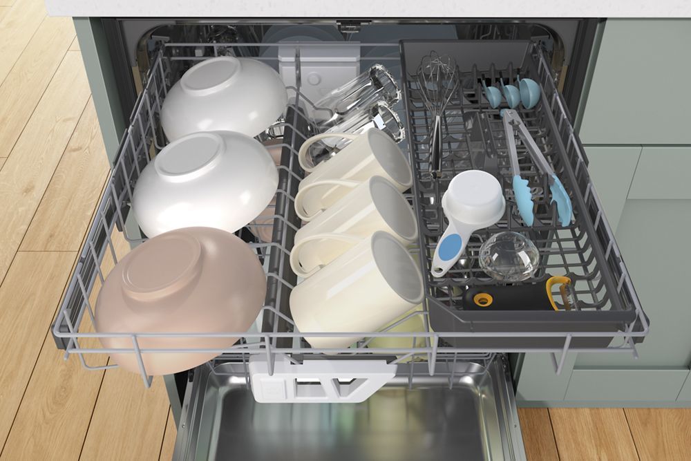 Load More, Run Less In This Fingerprint Resistant Dishwasher With 3Rd Rack. Load Bowls And Mugs In The 3Rd Rack To Free Up Space Below, And Fit Tall Items Where You Want In The Large Capacity Dishwasher With Adjustable Rack. And With Our Quietest Dishwasher At 41 Dba, You Can Keep The Conversation Going While Dishes Get Clean.