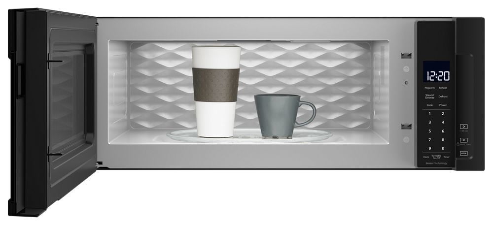 Fit tall glasses, wide plates and big bowls in this low profile microwave that still has enough room for all the essentials with 1.1 cu. ft. of purposeful capacity.