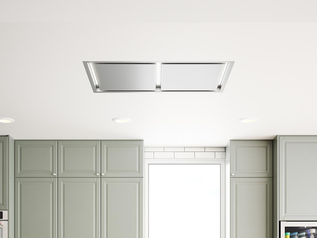 This sleek, minimalist hood features Zephyr Connect , giving you the ability to control it from anywhere, including from your smart speaker and it discreetly mounts into the ceiling above your cooking surface for power and an unobstructed view. Your kitchen will stay clean and smoke free with the Perimeter Aspiration System and multiple blower options, and the tri-level BriteStrip LED lighting ensures a good-looking glow. Available in white and stainless steel.