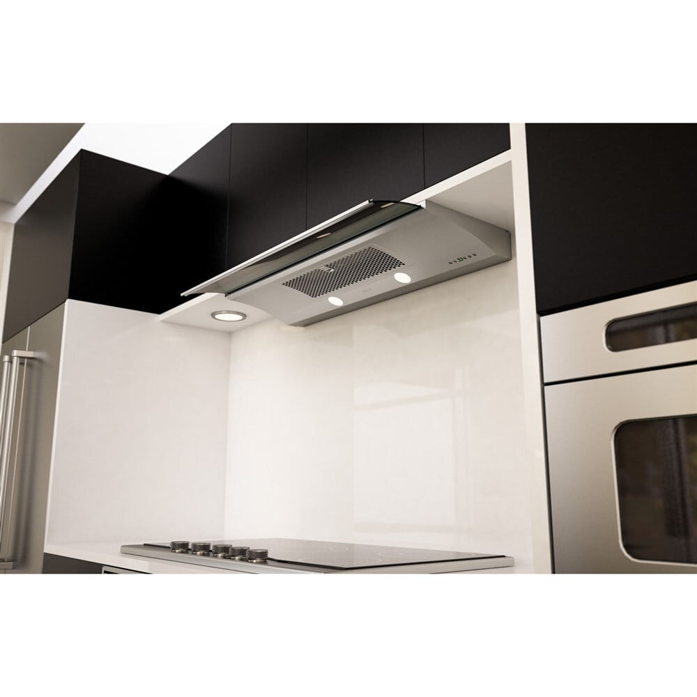 Tucked Neatly Beneath Your Bridge Cabinet, Genova Quietly Works Out Of Sight. With A Retractable Smoke-Gray Glass Visor That Controls The Hood S 500-Cfm Blower And Lights, The Genova'S Crescent-Like Body Delivers Stunning Design And Quality Performance. Available With An Optional Wireless Remote.